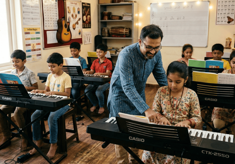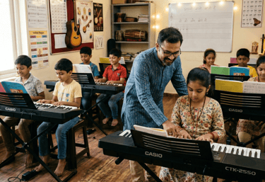 Vineet Sir teaches Keyboard and Piano, helping students build rhythm and musical skills. 🎹